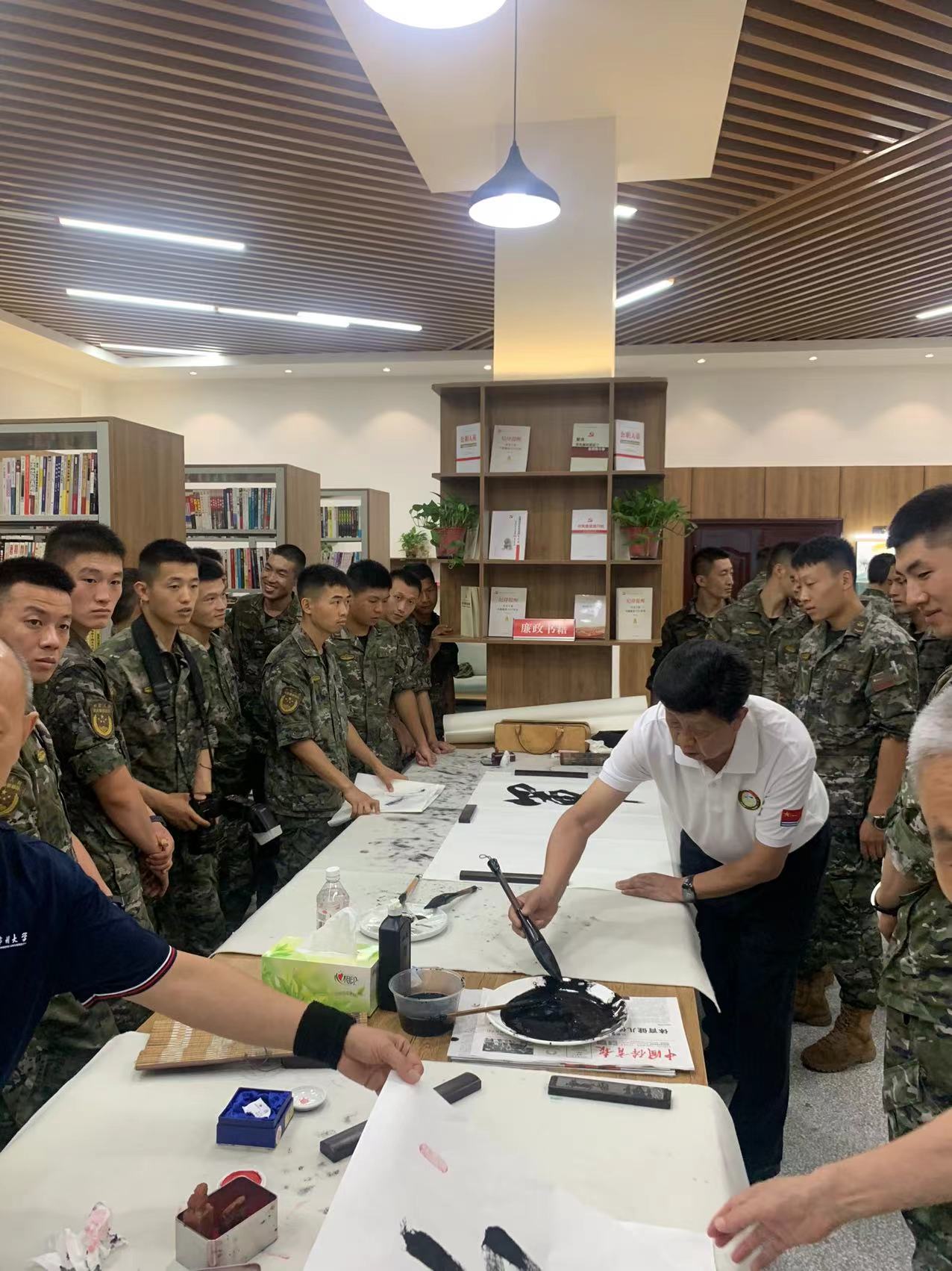 近日,在学习.二十大三中全会精神宣讲报告会鼓舞下,郑东新区书法协会在冯刘选主席带领下,举办了多场庆祝建军97周年活动.用书画文化艺术作品传递不忘初心.,牢记落实习主席强囯强军战略,由河南省军区原副司令员、郑东新区书画协会总顾问王太顺带领河南省郑州市郑东新区书画协会领导班子部分成员走进军营用书画文化艺术讴歌、赞美人民军队。在特战部队看到了一支精武强能敢打必胜.刻苦学习高素质的专业化新时代军事人才,军旋书法家给战友们送来了精神食粮。老,中,青军人传帮带:受到了广大人民子弟兵的热情欢迎,体现了军民渔水情.呈现了军民团结如一人.试看天下谁能敌的盛会,迎来了文化强军强国在行动,得到社会各界好评如加。